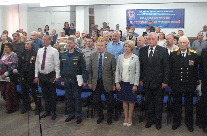 После церемонии все участники собрались в зале Института. Здесь память героев почтили минутой молчания.