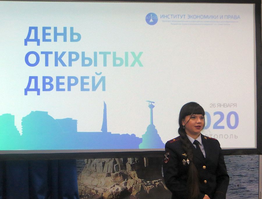 Девиз вуза – Институт практических дел. В нашем учебном заведении преподают многие практики из органов власти и правоохранительных структур. На Дне открытых дверей к гостям обратились старший прокурор отдела Прокуратуры Севастополя Елена Алтаева и старший ревизор контрольно-ревизионной группы УМВД России по городу Севастополю Яна Колесник. Рассказав о работе своих ведомств, преподаватели-практики пожелали нынешним гостям встретиться в аудиториях Института в начале следующего учебного года уже как преподаватели и студенты.