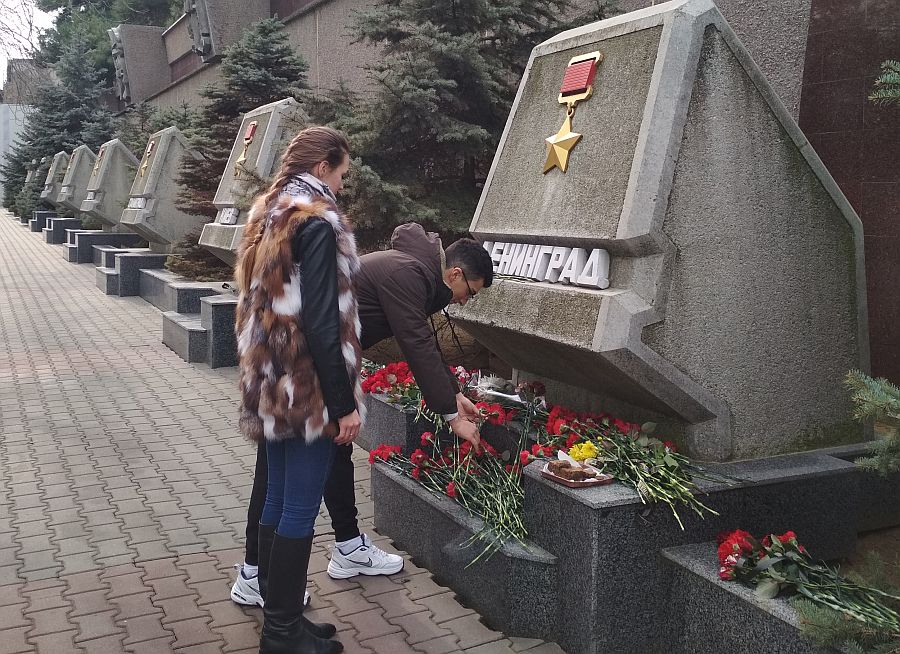 В рамках патриотической акции «Вахта памяти», инициированной представителями кафедры гуманитарных, социальных, профсоюзных и естественнонаучных дисциплин Института экономики и права (филиал) ОУП ВО «АТиСО» в г. Севастополе Инной Колесник и Ларисой Даниленко, активисты студенческого спортивного клуба и студенты 2-го курса направления подготовки «Юриспруденция» 27 января 2020 года возложили цветы к стеле города-героя Ленинграда на аллее Славы в честь Дня полного освобождения Ленинграда от фашистской блокады.