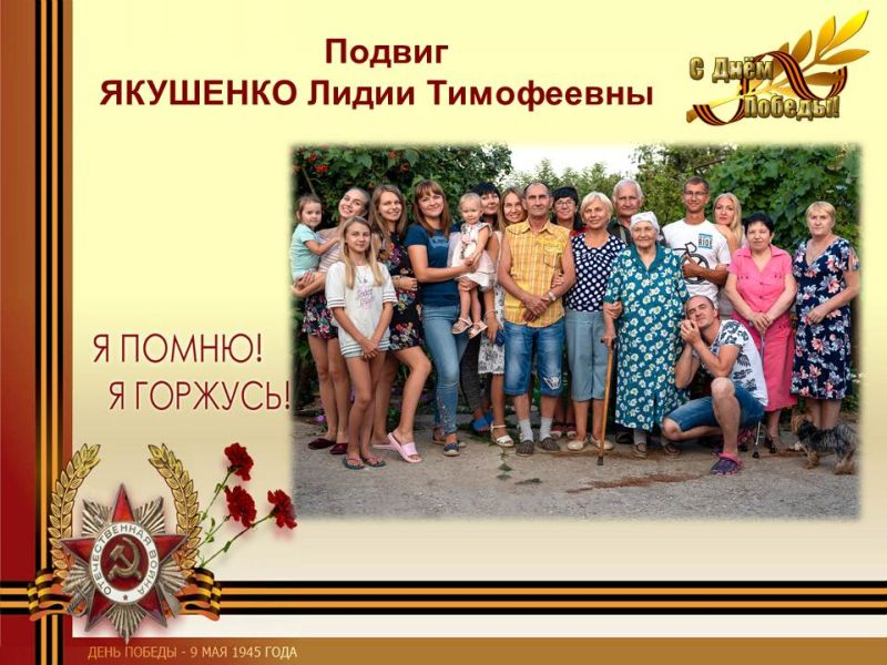 И сегодня и в будущем мы должны помнить о подвигах наших предков, о сложности тех времен, которые они пережили, чтобы никогда, ни за что на свете не повторить их судьбы. Нашему поколению нужно сохранять мир во всем мире и в нашей стране в память о каждом солдате, погибшем на войне, о каждом ребенке, погибшем от голода, о каждом человеке потерявшем все, что у него было.