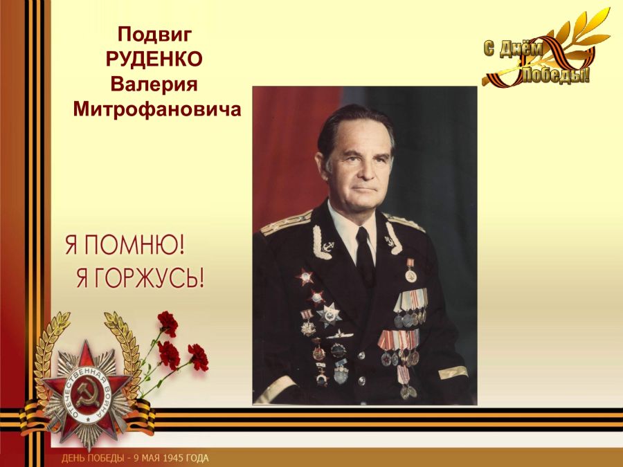 Мой дед – Валерий Митрофанович Руденко, родился в казачьей станице Ильской на Кубани, но с детства его тянуло к морю, он мечтал служить на флоте. В 1938 году поступил в Высшее военно-морское инженерное училище имени Дзержинского.