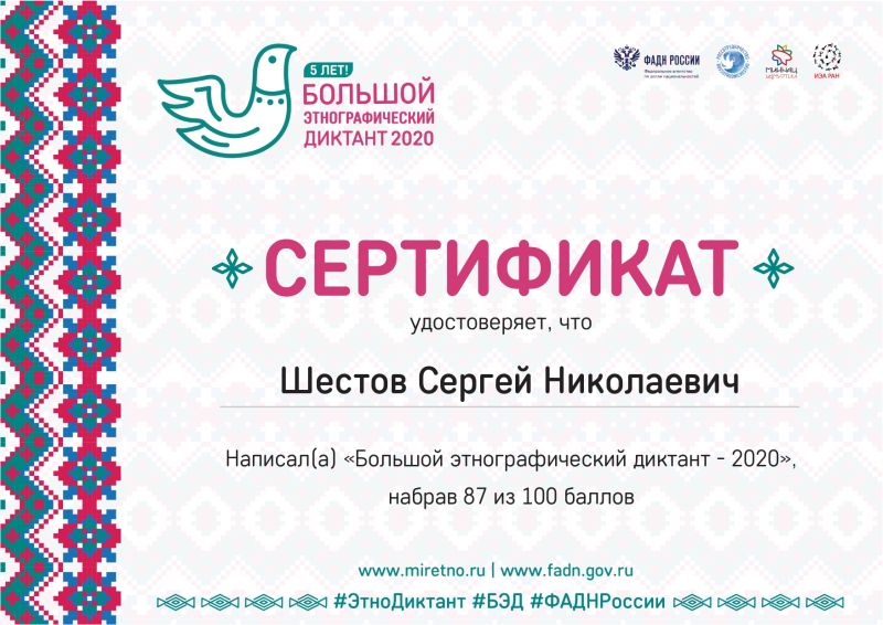 Большой этнографический диктант - это просветительский проект, который знакомит с культурой народов, проживающих в России, а также позволяет оценить общий уровень этнокультурной грамотности. Организаторы акции - Федеральное агентство по делам национальностей и Министерство национальной политики Удмуртской Республики.