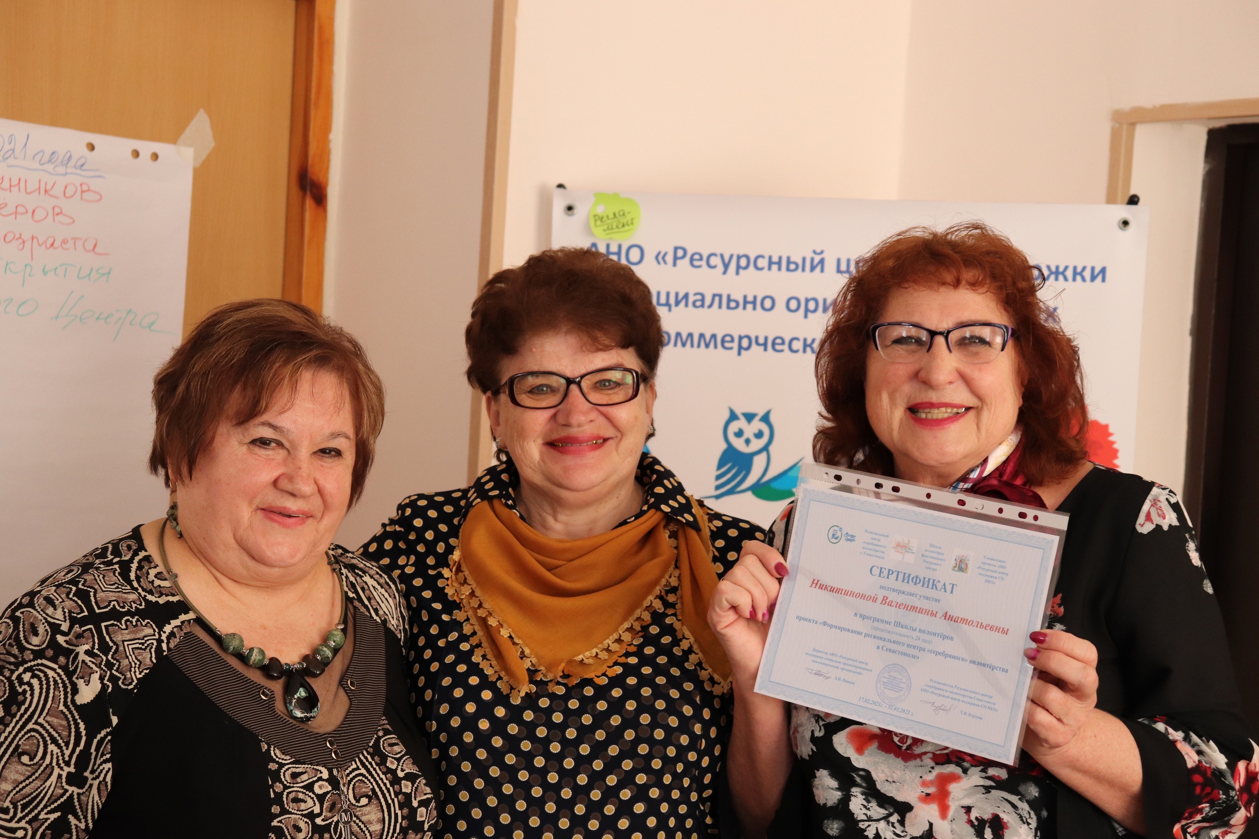 Руководитель Регионального центра «серебряного» волонтёрства Севастополя Татьяна Куртева и директор АНО «Ресурсный центр поддержки социально ориентированных некоммерческих организаций» Людмила Панова вручили участникам школы волонтеров именные сертификаты. В числе участников мероприятия их получили координатор волонтеров и студенчества Института экономики и права (филиала) ОУП ВО «Академия труда и социальных отношений» в г. Севастополе Виктор Малютин и начальник информационно-технического отдела Института, член Союза журналистов России Игорь Руденко-Миних.