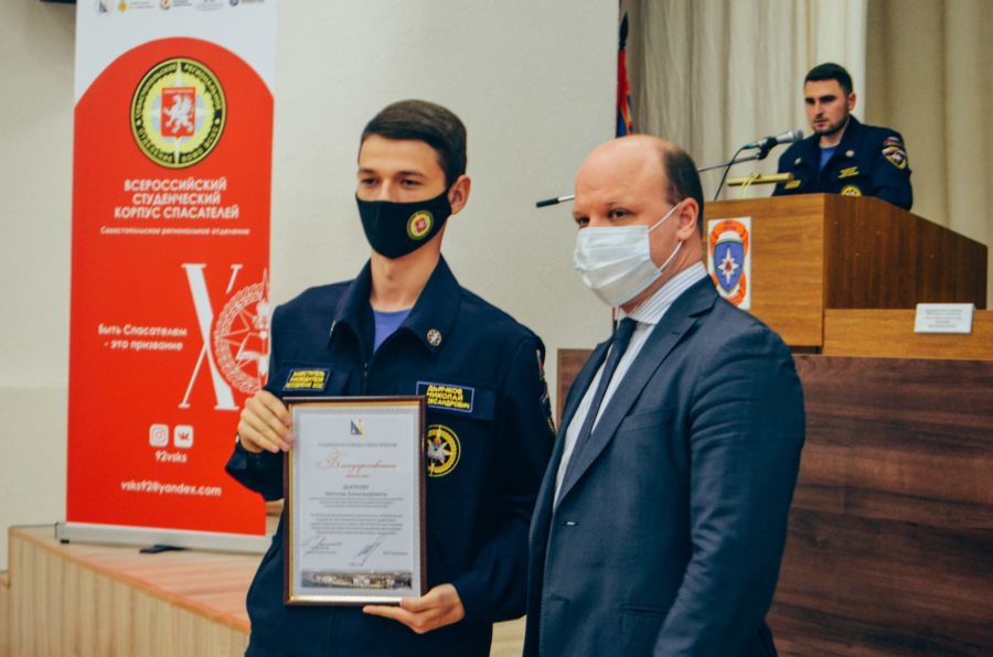 23 апреля состоялось торжественное награждение добровольцев корпуса благодарностями Губернатора города Севастополя. В церемонии приняли участие начальник МЧС России по городу Севастополю, генерал-майор внутренней службы Дмитрий Козлов, Заместитель Губернатора - Председателя Правительства Севастополя Игорь Михеев, директор Института экономики и права (филиала) ОУП ВО «Академия труда и социальных отношений» в г. Севастополе Сергей Шестов и другие почетные гости.