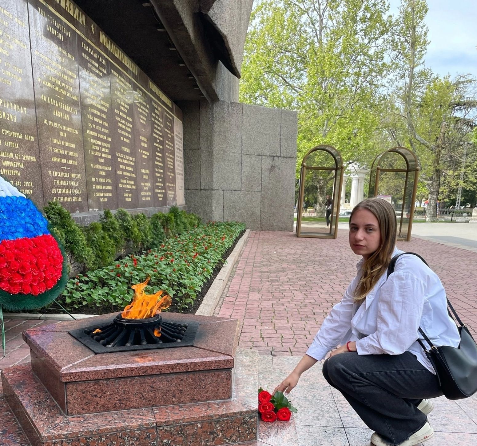 «Сегодня мы тоже почтили память павших героев минутой молчания и возложили цветы к Вечному огню. Рассказала студентам историю Второй героической обороны Севастополя и значение символов, изображённых на мемориале» - сообщила Наталья Прищепа.