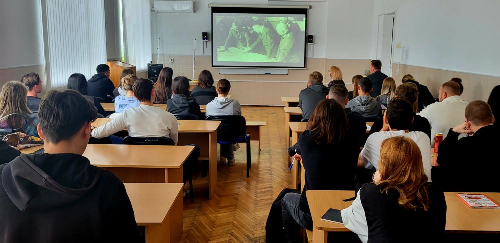 Организовали кинопоказ кураторы академических групп - заместитель директора по учебной и воспитательной работе, доцент кафедры правовых дисциплин Ирина Шостак, заместитель директора по науке и развитию, профессор кафедры экономики и менеджмента Ирина Севостьянова, заведующая кафедрой гуманитарных, социальных и естественнонаучных дисциплин Татьяна Штец и старший преподаватель кафедры правовых дисциплин Наталья Прищепа.