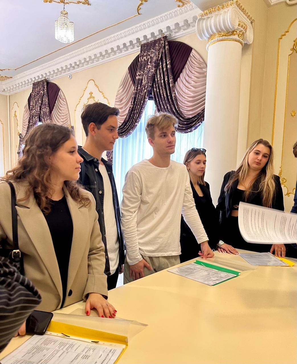 Cтуденты смогли изнутри увидеть работу отдела ЗАГС, задать интересующие вопросы. Завершилось занятие в зале бракосочетаний, где студентам рассказали о тонкостях торжественной церемонии создания семьи.