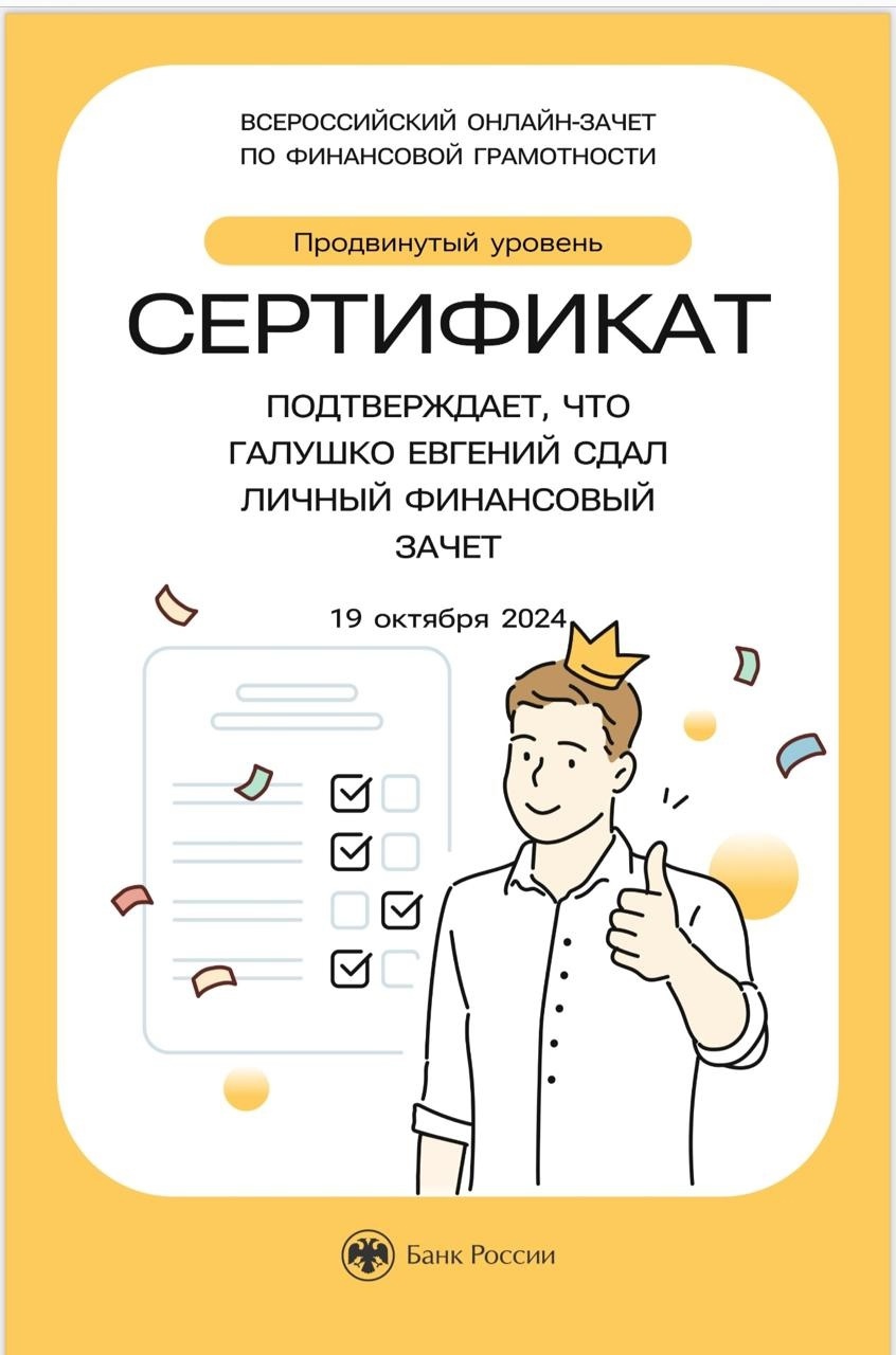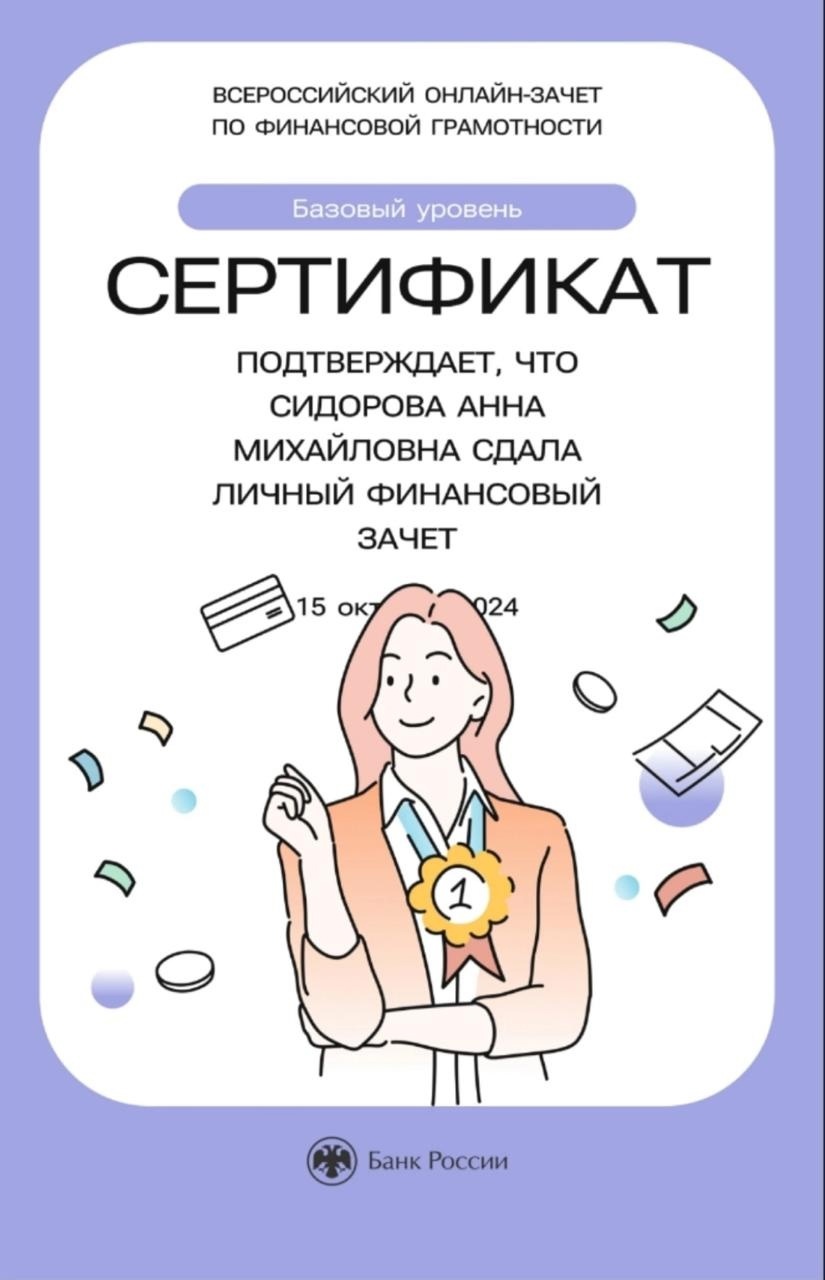 С 8 по 29 октября 2024 года Банк России проводит VII ежегодный Всероссийский онлайн-зачет по финансовой грамотности. Цель мероприятия – повышение финансовой грамотности населения.