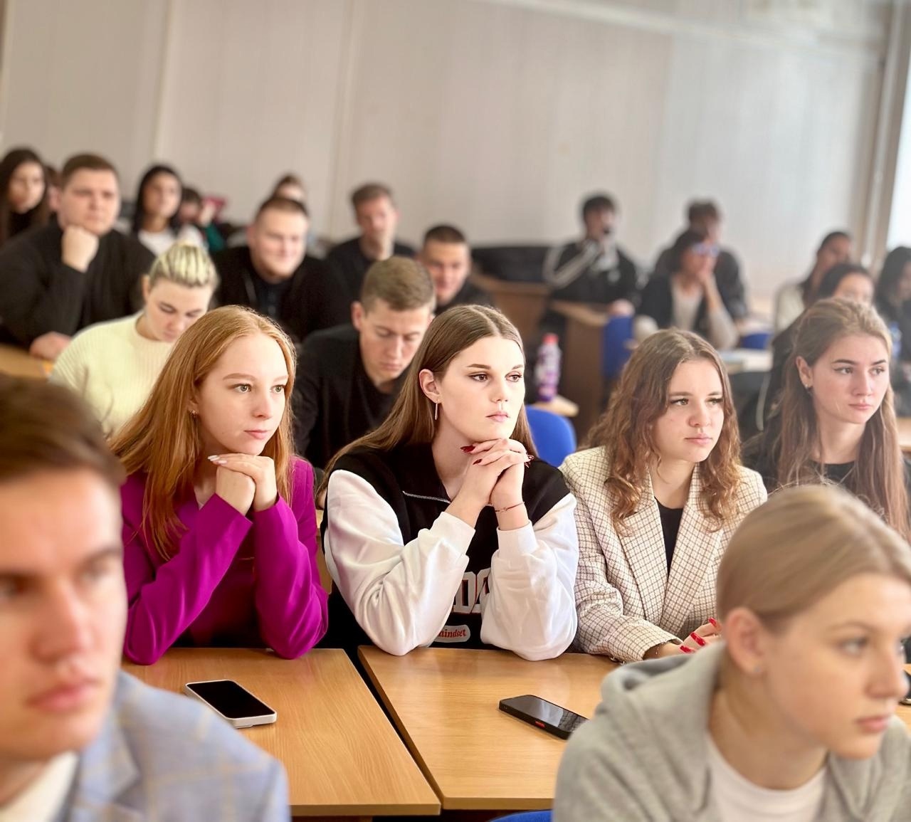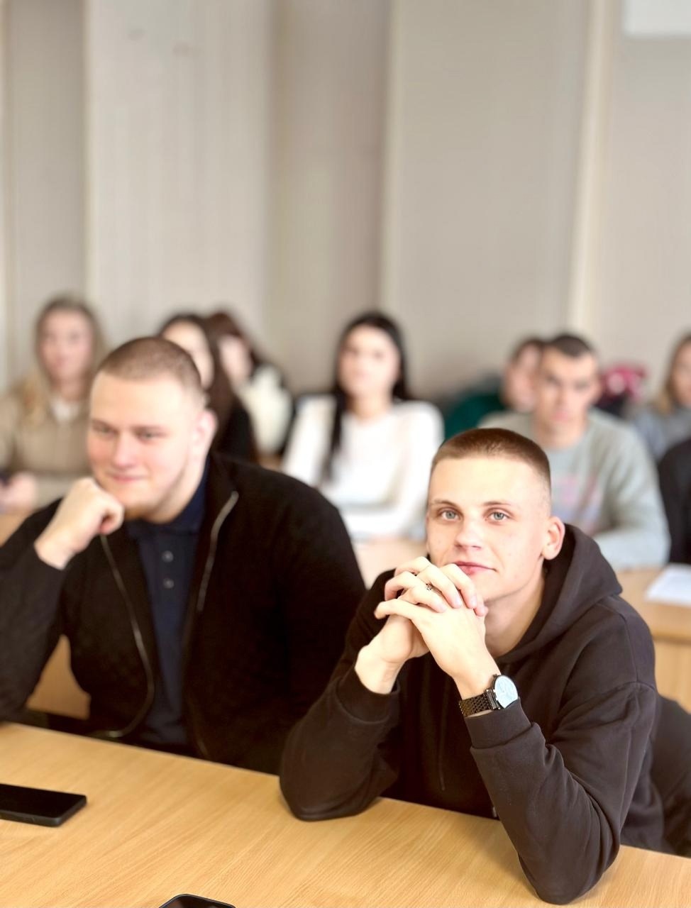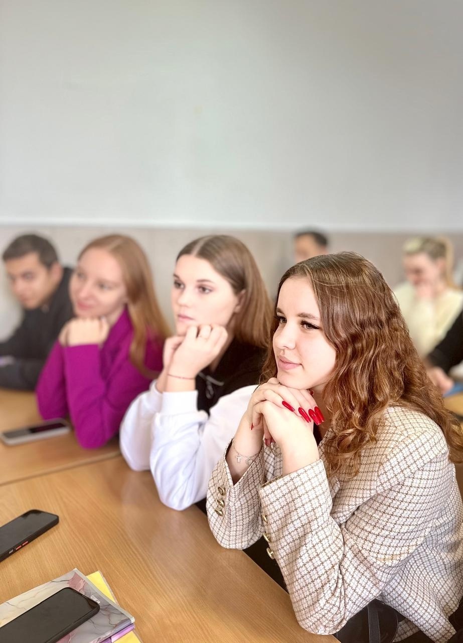 Особый интерес и аспект обсуждению придали вопросы, поступавшие от присутствовавших в качестве слушателей заведующей кафедрой гуманитарных, социальных и естественно-научных дисциплин, кандидата философских наук, доцента Татьяны Штец и заведующей библиотекой Ирины Гетманской.