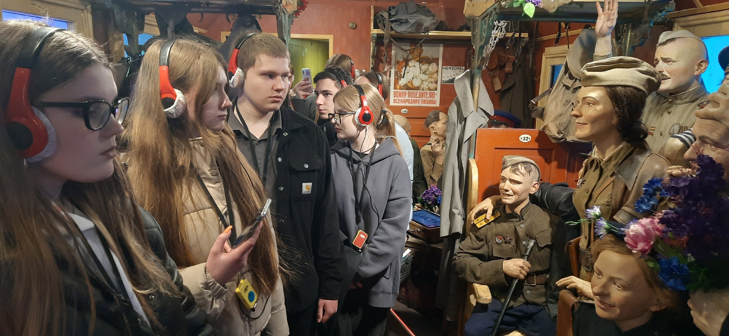 ️Удивительно реалистично представлены инсталляции, архивные фото и документы, оружие, личные вещи, предметы обихода, инвентарь, даже кадры военной хроники, пейзаж за окном и стук колёс.