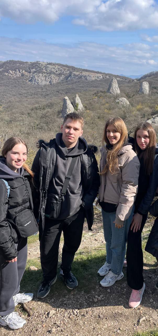 Студенты-экономисты с преподавателем кафедры экономики и менеджмента Яной Колесник побывали в точке локации "Храм Солнца", а также осуществили успешную попытку восхождения на горы "Ильяс-Кая".
