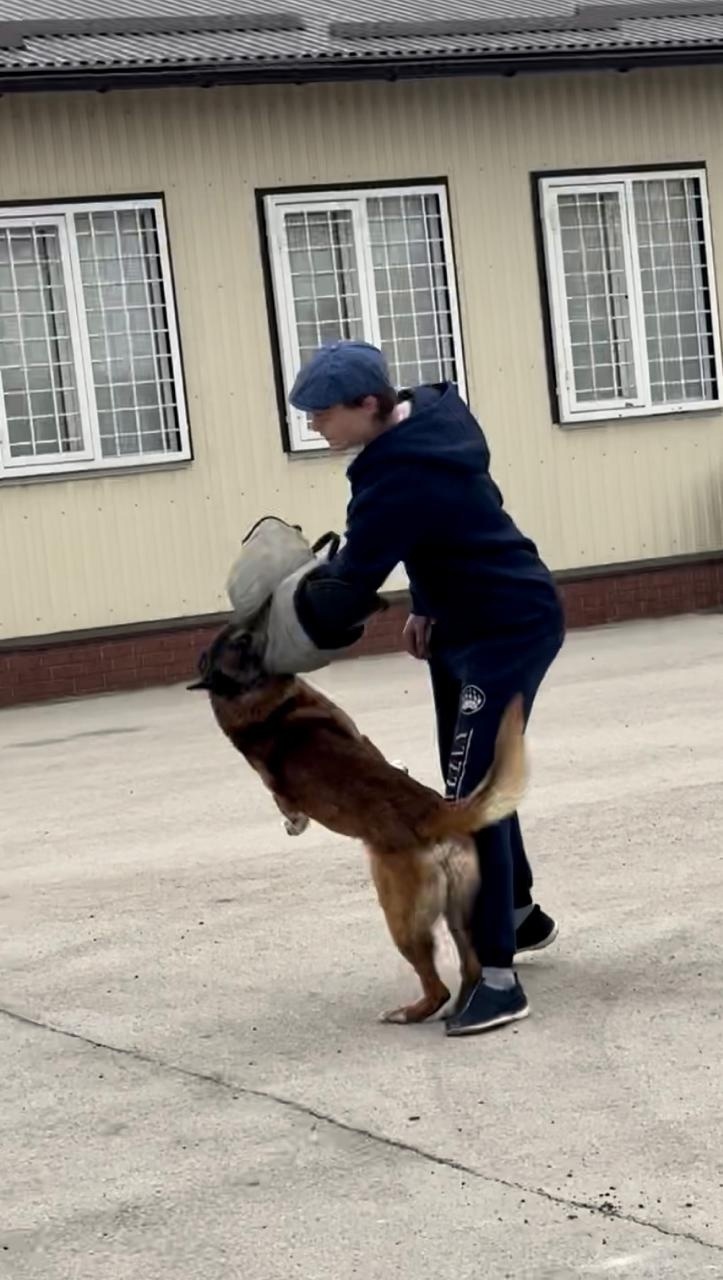 Кинологи показали занятия со служебными собаками и ребята стали участниками тренировки.