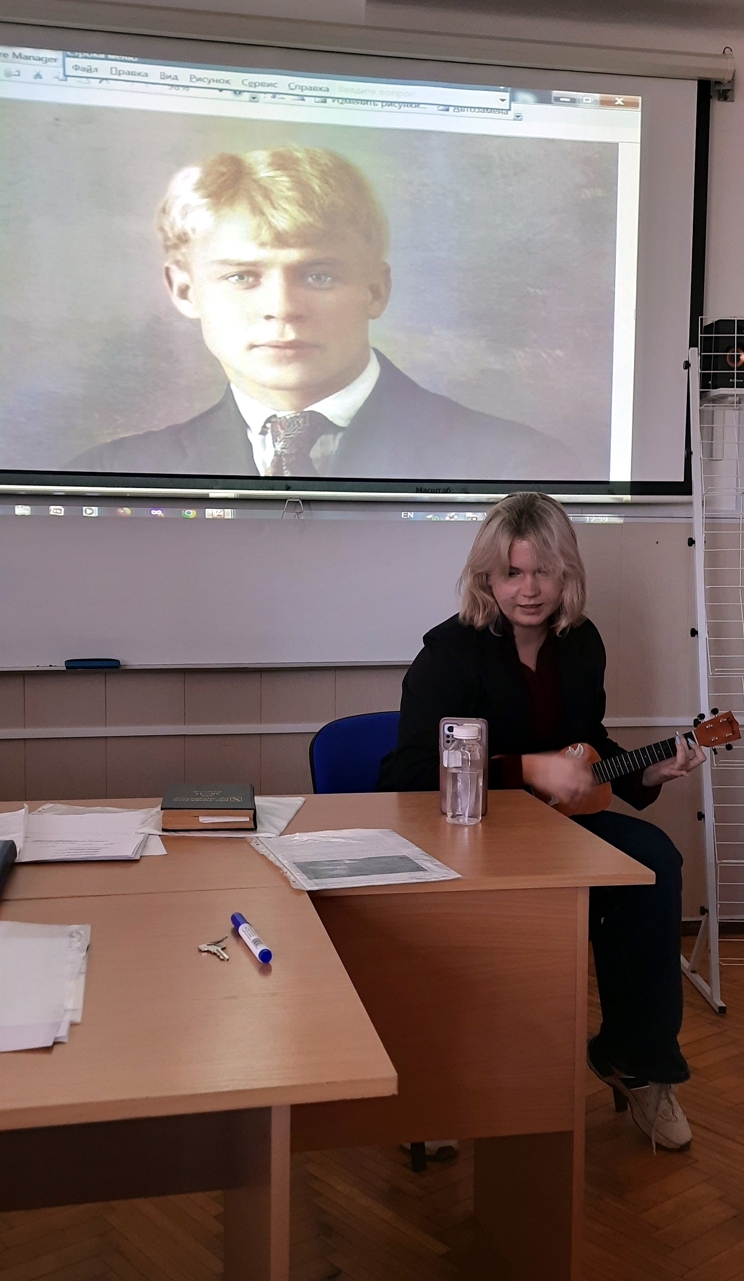 Студенты не были пассивными слушателями, они читали стихи поэтов, пели романсы и песни на стихи Есенина. Это студенты 1 курса Ева Боручева, Макарцев Александр и студент 3 курса Владислав Богачев. К ним «присоединился» замечательный актер, исполнитель роли Есенина Сергей Безруков, который с экрана пронзительно прочитал стихотворение поэта «Мне осталась одна забава».