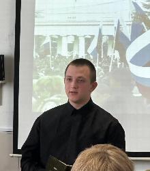 Вспомнили тех, кто защищал Родину со времен Великой Отечественной войны. Заведующий кафедрой гуманитарных, социальных и естественнонаучных дисциплин Татьяна Павловна Штец и студент 1 курса направления подготовки Юриспруденция Ростислав Будченков прочли стихи о войне – вечную классику о тех днях.