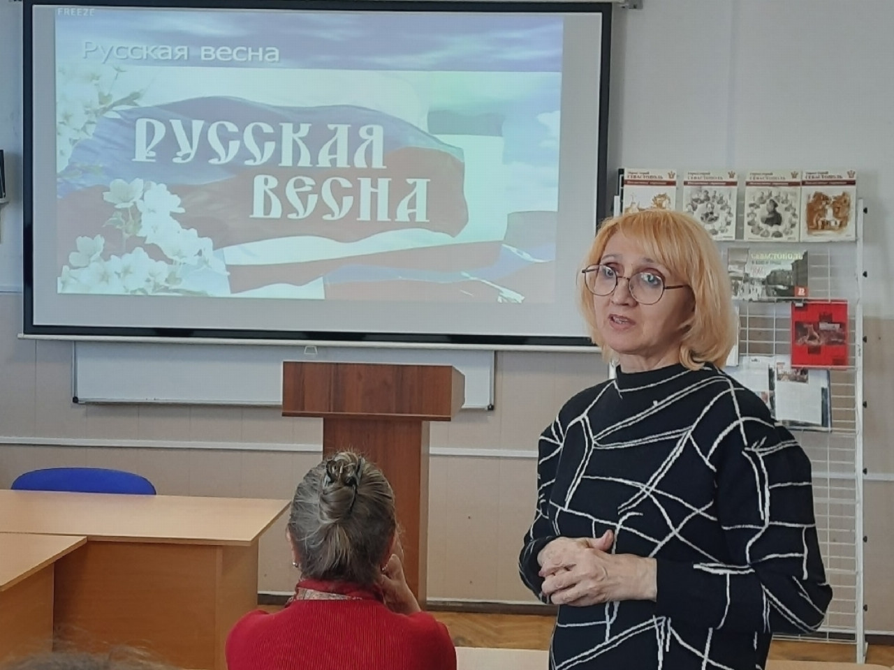 Ирина Николаевна Гетманская подготовила уникальную книжную выставку, посвященную событиям Русской весны.