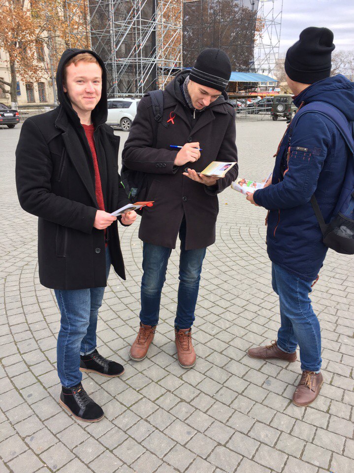 Также волонтёры Института совместно с иными волонтёрскими организациями раздавали красные ленточки, которые являются символом борьбы с ВИЧ/СПИД.