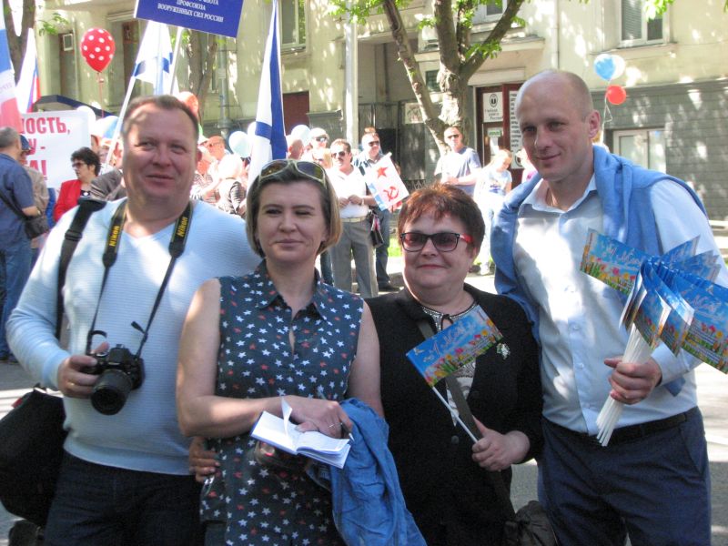 Участники демонстрации в честь Праздника Весны и Труда пронесли по центральным улицам города-героя флаги России и профсоюзного движения, символику Института, цветы.